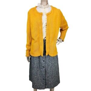 keywords: vintage, knit, retro, gold, mustard, crochet, secretary, geek, grandma, grandpa, secretary, open front, grannycore, open front, rare, hard to find,