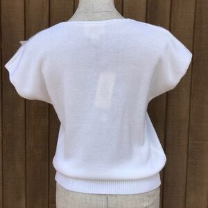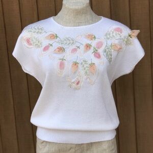Vintage 70s NEW Womens Short Sleeve Sweater Top Embellished Appliqué Medium