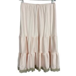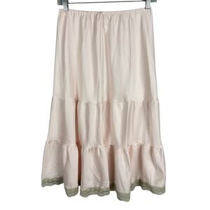 Vintage 70s Natori Tiered Champagne Satin Tiered Elastic Waist Midi Skirt M