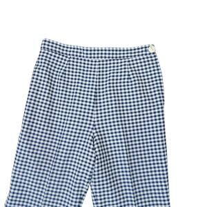 Vintage 70s navy blue and white gingham check plaid flare pants