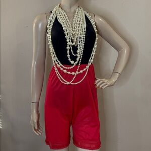 Vintage Nylon Red Lace Slip Bloomer Panties