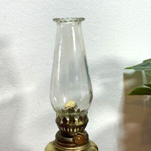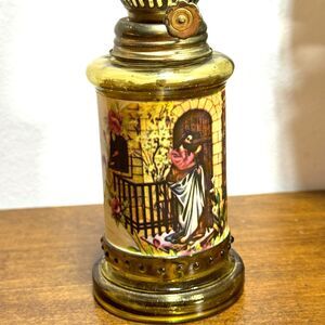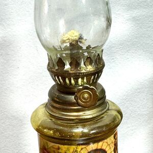 Vintage 70's Oil Lamp Made In Hong Kong 10" Amber Clear Chimney Religious Jesus