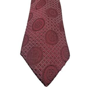 Vintage 70s Oleg Cassini Tie NEW Designer Burgundy Wine Red Textured Crest Logo