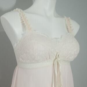 Vintage 70s Olga Sleeping Pretty Light Pink Slip Nightgown with Lace. Babydoll Style, light pink with lace detail.