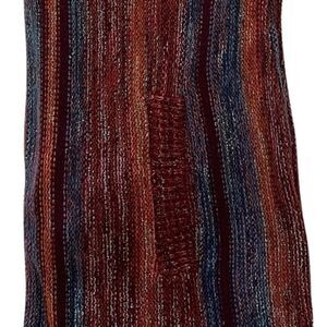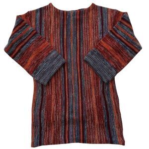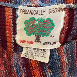 Vintage 70s Organically Grown Sweater by Arpeja. Super unique sweater featuring multi colors including burgundy, orange, blue in a vertical design. Sleeves are 3/4 length & have blue cuffs. Kangaroo style pockets on the front on each side (pockets are separate & not connected like a sweatshirt). Slim design. Really unique sweater that reminds me quite a bit of Coogi Australia. In very good condition with minimal normal wear consistent with vintage age. No size listed so please check the following approximate measurements carefully prior to purchasing: 18.5” from pit to pit & length 28.5” from shoulder to hem. Easily unisex. Bundle to maximize shipping!
