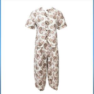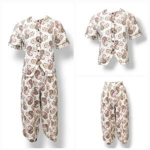 Vintage 70's Paisley Floral Top and Crop Wide Leg Pants 2 PC Set Medium/Waist 27