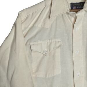 Vintage 70s Panhandle Slim Mens Size Medium Pale Yellow Western Shirt 16/33 Oxford Cloth
