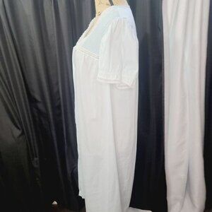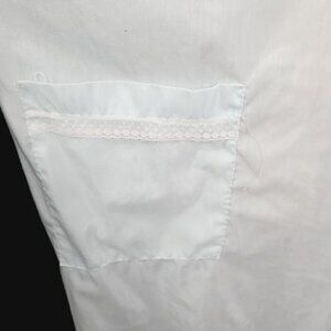 DETAILS: eyelet lace trim short sleeves, full front buttons, v-neck, light weight, 1 big pocket