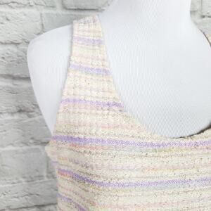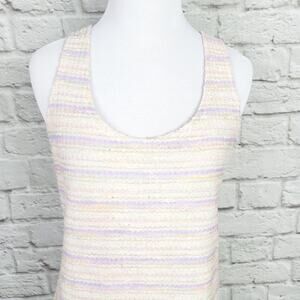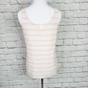 Lovely textured/nubby sleeveless blouse in pastel stripes (pink, purple, white)