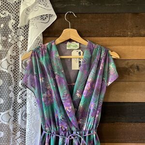 Vintage 70s Patty O’Neil Purple Floral Layered Mini Dress