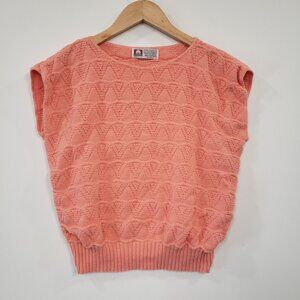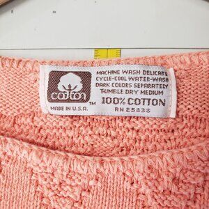 Vintage 70s Peach Cotton Knit Sleeveless Sweater USA Cottagecore Preppy Retro