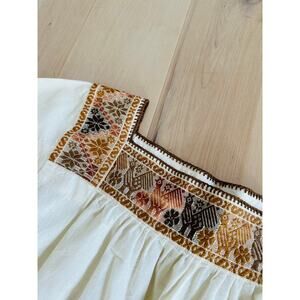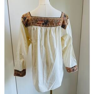 Vintage 70s Peasant Blouse Boho Hand Embroidered Cotton Folk Festival Shirt SZ M