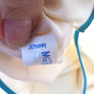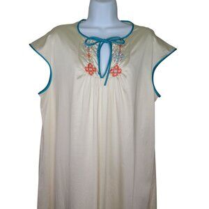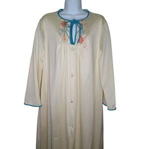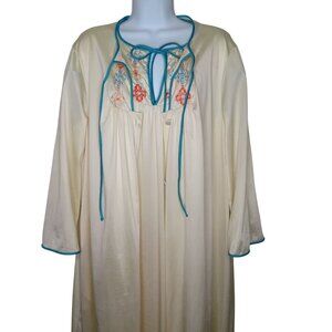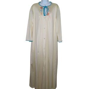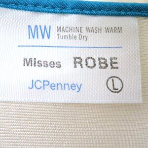 This JCPenney misses robe and nightgown in size L combines elegance and comfort. Made from 100% Nylon Antron III, it features intricate floral embroidery and contrasting blue trim.