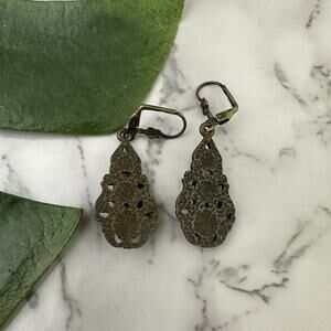 Vintage 70s Pendant Earrings Pink Green Rhinestone Floral Boho Peasant Dangle