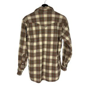Vintage 70s Pendleton Brown Plaid Western Yoke Long Sleeve Pearl Button Up Large