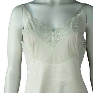 Vintage 70s Pennys Full Length Nylon Dress Slip S Beige Lace Pin Up Glam Modest