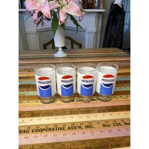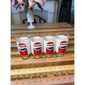 Vintage 70s Pepsi Drinking Glass 12 oz Footed Pedestal Tumbler Set 4 Retro LOT
