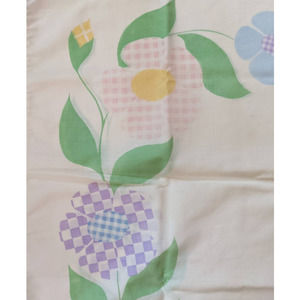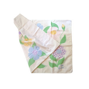Super cute vintage Anita Wagenvoord patchwork floral/flower power pillowcase from the 1970's. Large multicolor flowers on a white background.