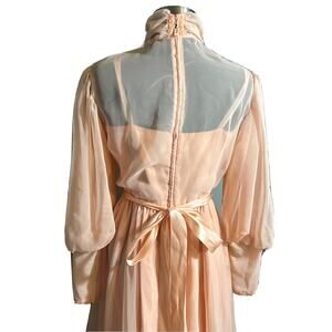 Vintage 70's Pink Victorian Lace Ruffles High Neck Prairie Long Sleeve Dress