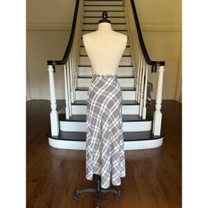 Vintage 70s Plaid Tartan A-Line Maxi Skirt Winter Red White Grunge Indie Preppy