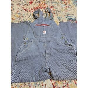 Vintage 70's Pointer Brand Overalls 38x34 Blue White Hickory Stripe Railroad
