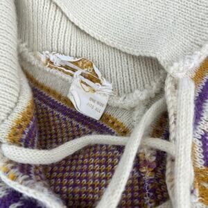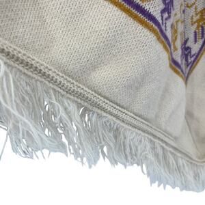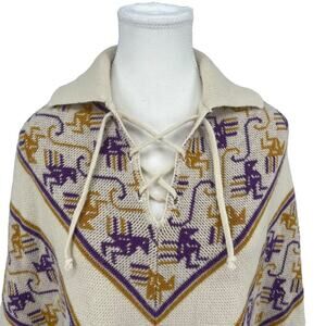 Vintage 70’s Poncho Knit Bird Print Gold Purple OSFA