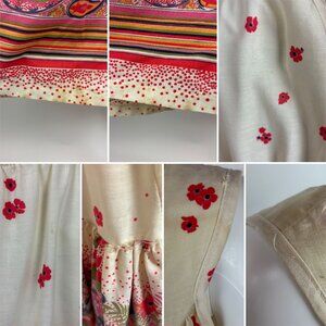 Vintage 70s Prairie Sundress Womens Large Peacock Bird Border Print Fit And Flare