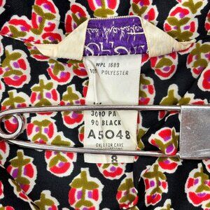 You'll be instantly feeling groovy whenever you don this 1970s blouse! It has a fun, multicolored border print and buttons up the front with small black buttons.