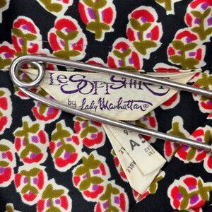 Vintage 70s Printed Blouse Women's Medium Pink Black Border Print Top