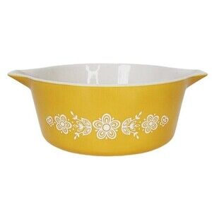 Vintage 70s Pyrex 475B Butterfly Gold 2 1/2 Quart Casserole Dish Bowl Server