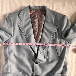 Vintage 70’s Ratner Powder Sky Blue Disco Sport Coat Mod Jacket Blazer - Vintage size 40R, see measurements for best fit - Union Made Amalgamated Clothing Workers of America - Excellent condition with light staining around collar