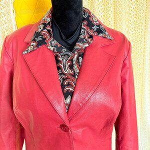 Vintage 70s Red Leather Pimp Jacket Women's Size 16 Jessica London