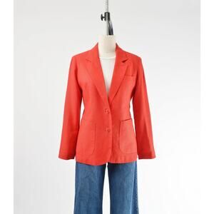 Vintage 1970's red linen blend blazer. Tailored style. Chest pocket. Front hip pockets. Two button closures. Very light shoulder padding. Lined.