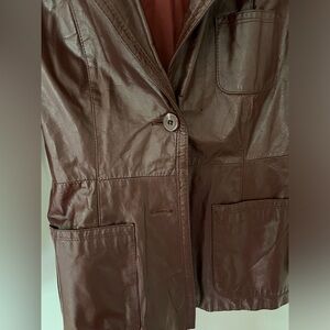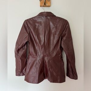 Vintage 70s Red Maroon Leather Retro Fitted Blazer Jacket Burgundy