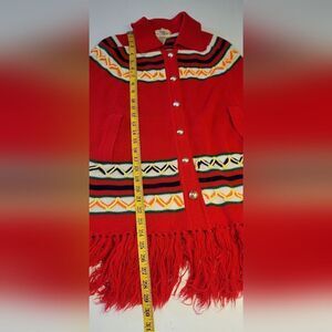 Vintage 70s Red Southwestern Knit Button Down Poncho Hippie Red