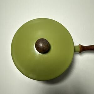 Vintage 70s Retro Avocado Green Fondue Pot Wood Handle