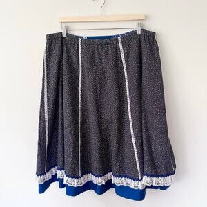 Vintage 70s Reversible Blue Peasant Skirt Midi Lace // Plus Size XXL 1X