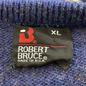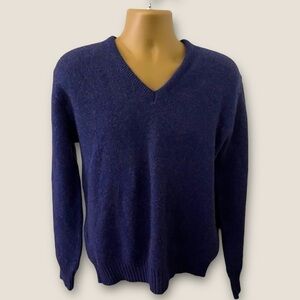 Vintage 70s Robert Bruce Wool Blend V-Neck Sweater Blue XL