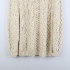 Vintage 70s Rockabilly Mens Large Hand Knit Wool Chunky Fisherman Sweater Cream