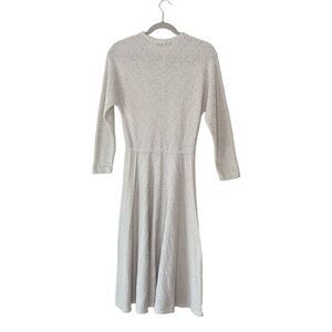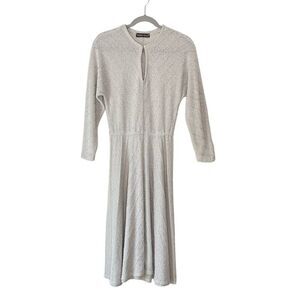 Vintage 70s Ronnie Heller Knit Dress 6 Ivory Elastic Waist Union Made Key Hole