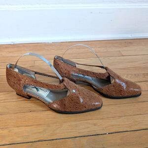 Vintage 70s Ros Hommerson Leather Shoes T-Strap Brown Dancing Heels Croc Size 6