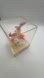 What a beauty! Decorative lucite acrylic cube featuring a butterfly and vibrant flowers. Music plays perfectly, the butterfly needs to be reattached but still does move. The music is a Carpenter song. The box has some scratches.