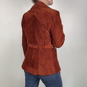 Vintage 70s Rust Suede Leather Jacket | Retro Belted Coat | Made in Korea