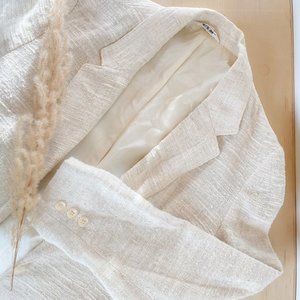 Vintage 70s Rustic Linen Blazer, Shrunken, Ivory