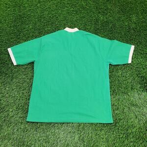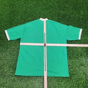Embrace 70s mod fashion with this vintage SEARS Perma-Prest shirt, featuring green and white trim. Made in the USA!
