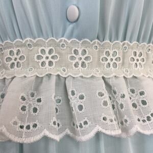 Gorgeous! Vintage 70s SEARS Blue Nylon Brady Bunch Boho Prairie Eyelet Lace Trimmed Long Nightgown, Button Top with Ruffle Lace Trim, Long Sleeves with Eyelet Lace & Satin Ribbon Bows, Ruffle Hem