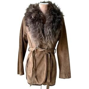 Genuine suede leather body with real lamb fur collar