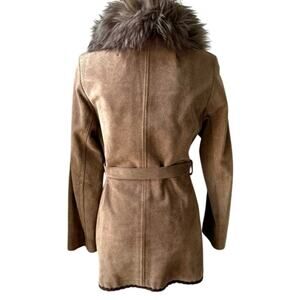Vintage 70s S.H.G Penny Lane Suede Coat Lamb Fur Collar UK 10 Boho Chic Indie