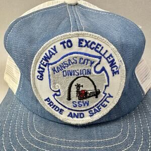 Vintage 70s SSW Kansas City Division Gateway To Excellence Blue Mesh Trucker Hat