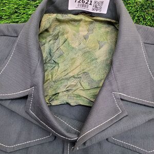 Vintage 70s safari chore coat S/M USA made dagger collar disco shacket nylon poly contrast stitch jacket